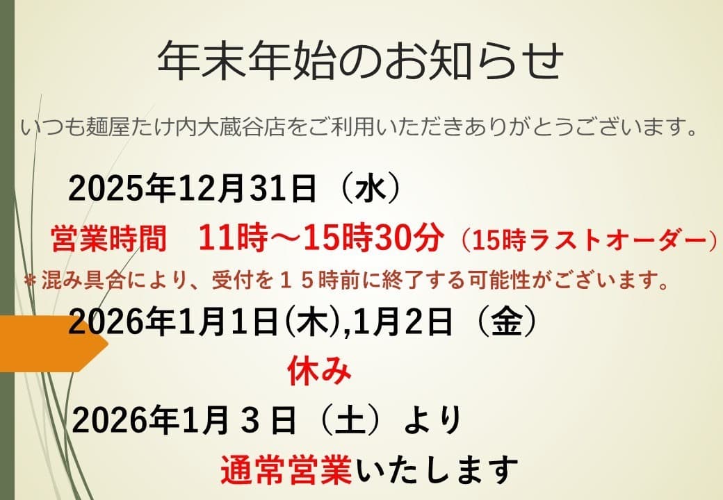 ※大蔵谷店メニューリニューアル